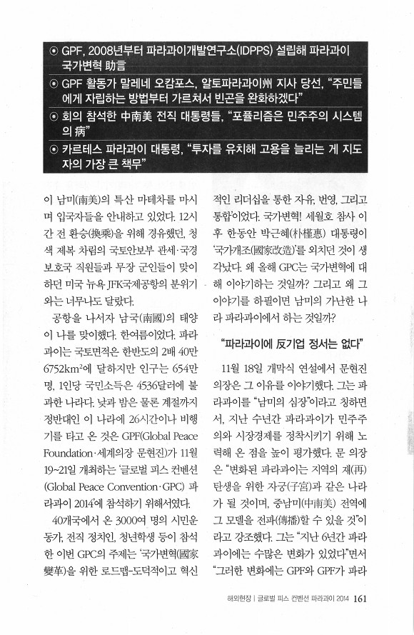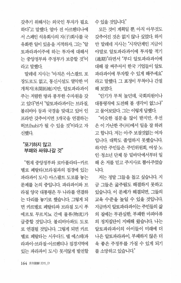 [월간조선 1월호] 남미 허브 꿈꾸는 파라과이를 가다 + 문현진 의장 인터뷰 기사