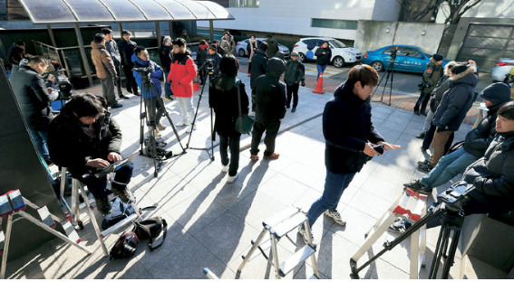 검찰이 ‘정윤회 씨 국정 개입 의혹’ 문건을 보도한 세계일보 사옥을 압수수색할 것으로 알려진 지난해 12월 5일 세계일보 앞에 긴장감이 흘렀다. 압수수색은 이뤄지지 않았다