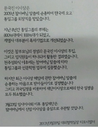 이사장이 참어머님의 해임지시에 순종할 것이라고 발표하였다. 이것이 문국진