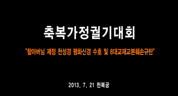 참아버님 제정 천성경 ・평화신경 수호 및 8대교재교본 훼손규탄 축복가정 궐기대회 동영상(2013.07.21.천복궁)