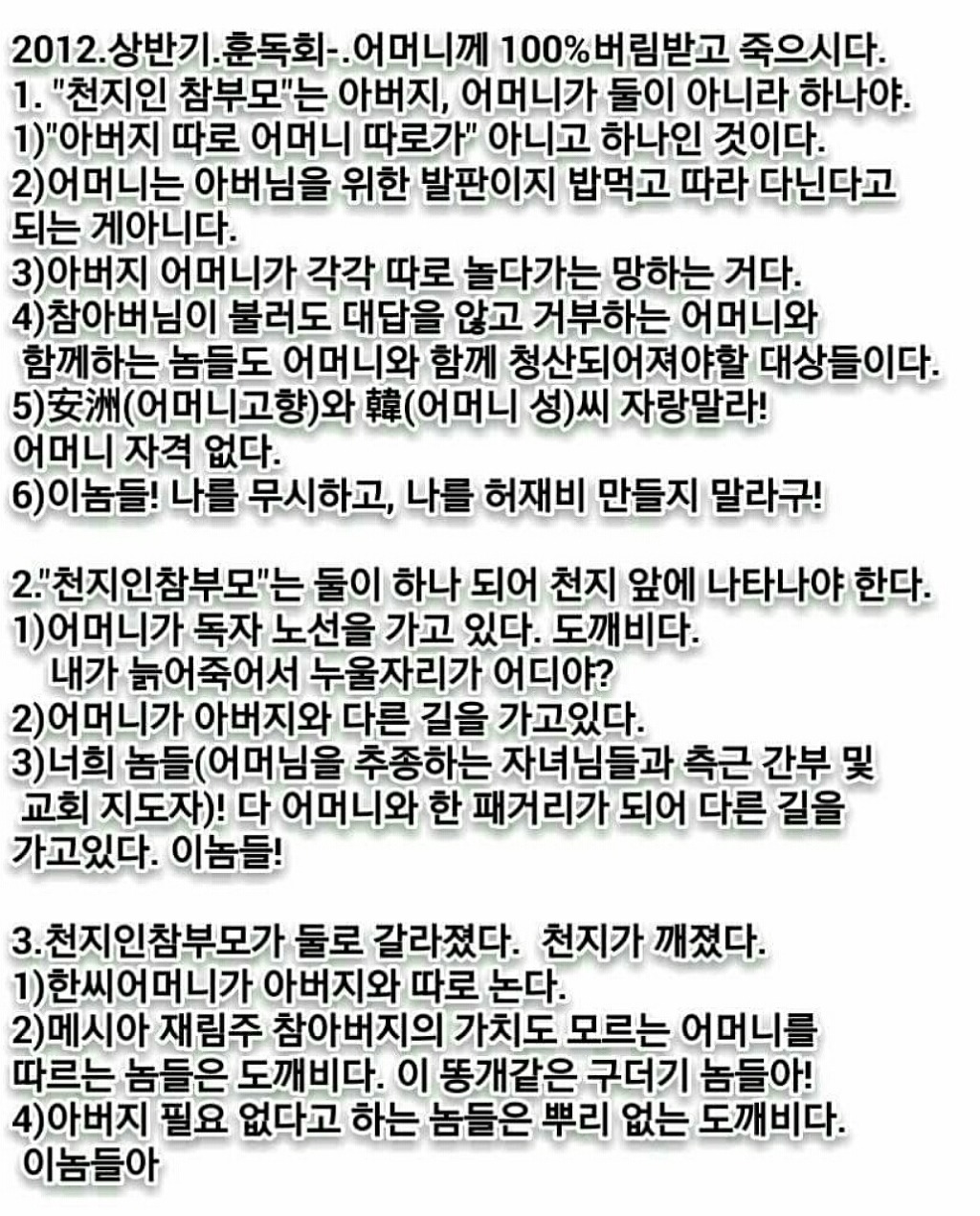 과거 최씨부인 실패 김씨부인 실패 김씨부인은 과거 내옆자리서 청평40일수련 그다음엔 한씨부인 메시아 부인사명 실패 끝