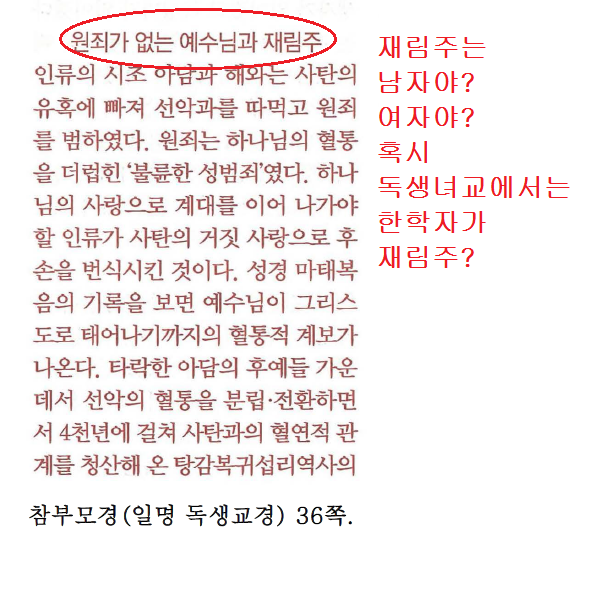 원죄가 없는 예수님이 재림한 재림주는 당연히 원죄가 없죠!
